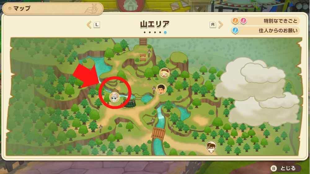 その他の条件 | サブイベント『カゲツとの出会い』発生済みで、カゲツ登場済み![]() ▼『カゲツとの出会い』は、 ・曜日と時間帯と天気はいつでも ・町のバザールに発展した後、山エリアに出現した魔法陣に入る で発生する |