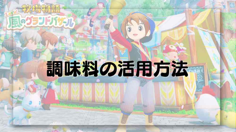Nintendo Switch・Nintendo Switch2・Steam用ソフト『牧場物語 Let’s! 風のグランドバザール(ぼくものバザール/グラバザ)』では、さまざまな料理が作れます。調味料を使う料理もありますが、イマイチ調味料の入手方法が分からないものです。この記事では、調味料の種類と入手方法を一覧で掲載しています。ぜひ参考にしてみてください!