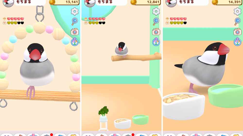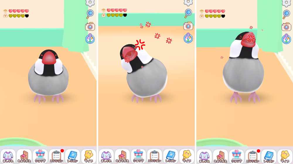 また、実際の文鳥とは違い、室温・湿度・照明・爪切り・お薬などの概念も今のところありません。お世話内容が少ないです。