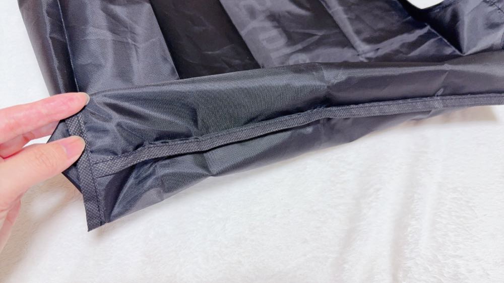 裏地がないので、折り畳んでコンパクトサイズにできます。お買い物のときにサッと取り出してサブバッグにしやすいですね。