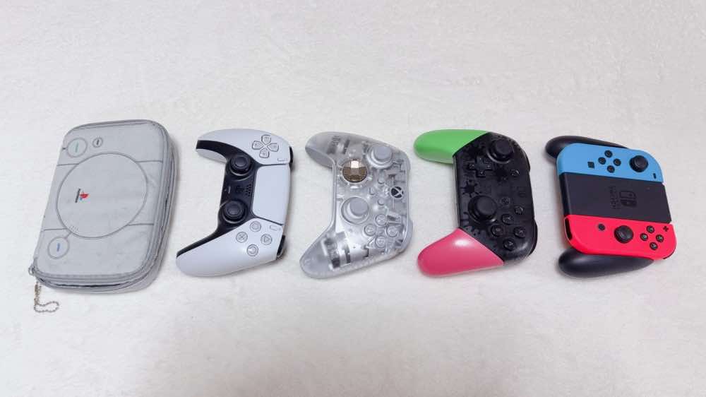 PlayStation5コントローラー・Xbox コントローラー・Switchプロコン・Switch Joy-Conと大きさを比較してみると、こんな感じです↓
