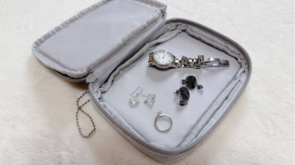 よく持ち歩くのは、腕時計とかピアスとかかなぁと思い、試しにアクセサリーを入れてみました↓