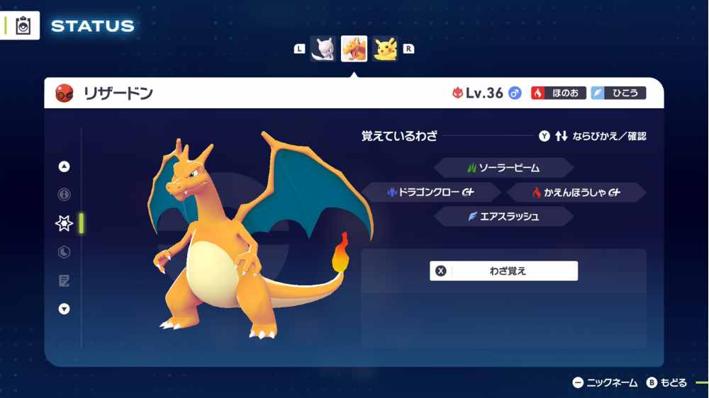 | 覚えている技 | ・ソーラービーム ・かえんほうしゃ ・ドラゴンクロー ・エアスラッシュ |