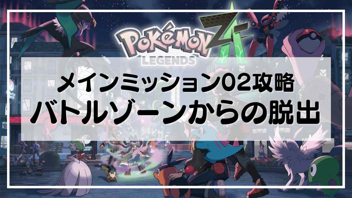 Nintendo Switch・Nintendo Switch2用ソフト『ポケモンレジェンズZ-A(ポケモンZA)』のストーリーの1つであるメインミッション02の「バトルゾーンからの脱出」の概要と攻略です。解放される要素やサイドミッション、推奨レベル、進め方を掲載しています。ポケモンZAのストーリー攻略にお役立てください。