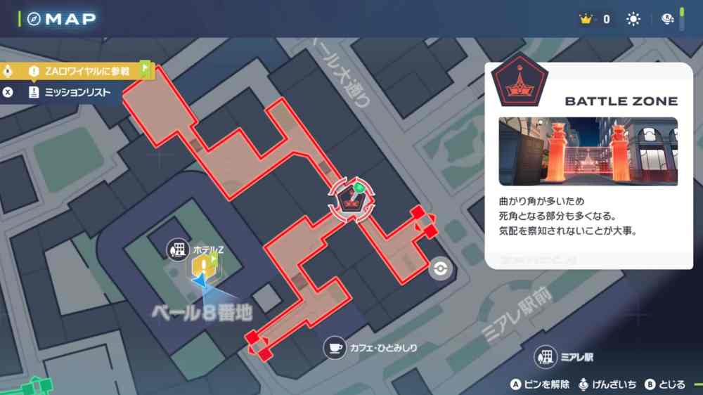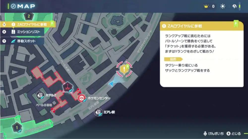 夜になるとバトルゾーンが出現するようになり、チケットポイントを貯めて、ランクアップ戦に挑める「ZAロワイヤル」に参加できるようになります。