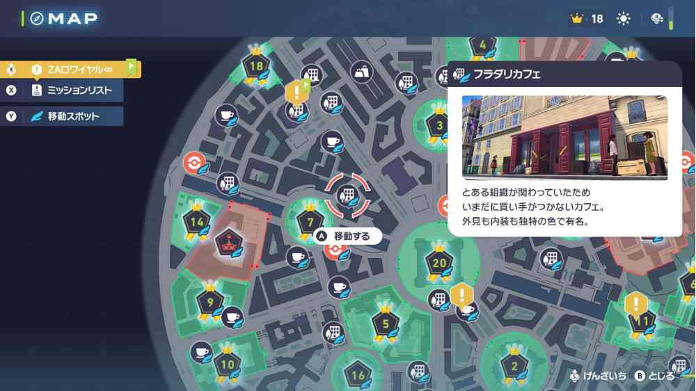 フラダリカフェはミアレタワー跡地(ワイルドゾーン20)の北西、ワイルドゾーン7の北東にあります。